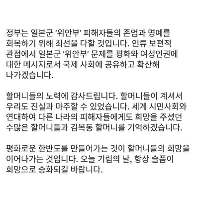 우리가 오늘 '위안부' 피해자 할머니들을 기릴 수 있었던 것은 28년 전 오늘, 고(故) 김학순 할머니의 피해사실 첫 증언이 있었기 때문입니다.
